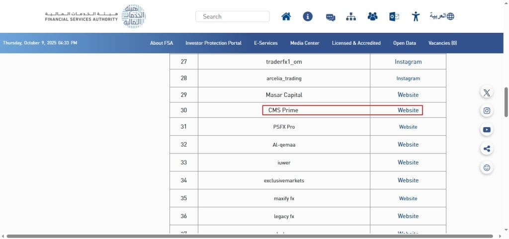 Before trading with any broker, it is essential to verify whether it is regulated by a reputable financial authority. In CMS Prime’s case: