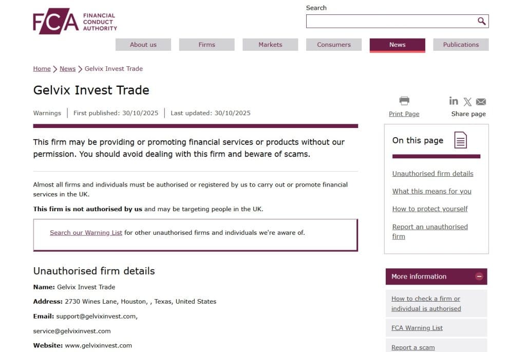 Gelvix Invest Trade (https://www.gelvixinvest.com/) claims to offer forex, crypto, and real estate investment services, but evidence shows it is likely a scam. The Financial Conduct Authority (FCA) in the UK has issued a public warning stating this company is unauthorized and unregulated. Reports indicate that Gelvix Invest Trade is a clone of another known scam website, using the same design and content under a new name. Scam review platforms also show a low trust score, suggesting high risk. Investors should avoid sharing personal information or sending money to this site, as recovery may be impossible once funds are lost.
