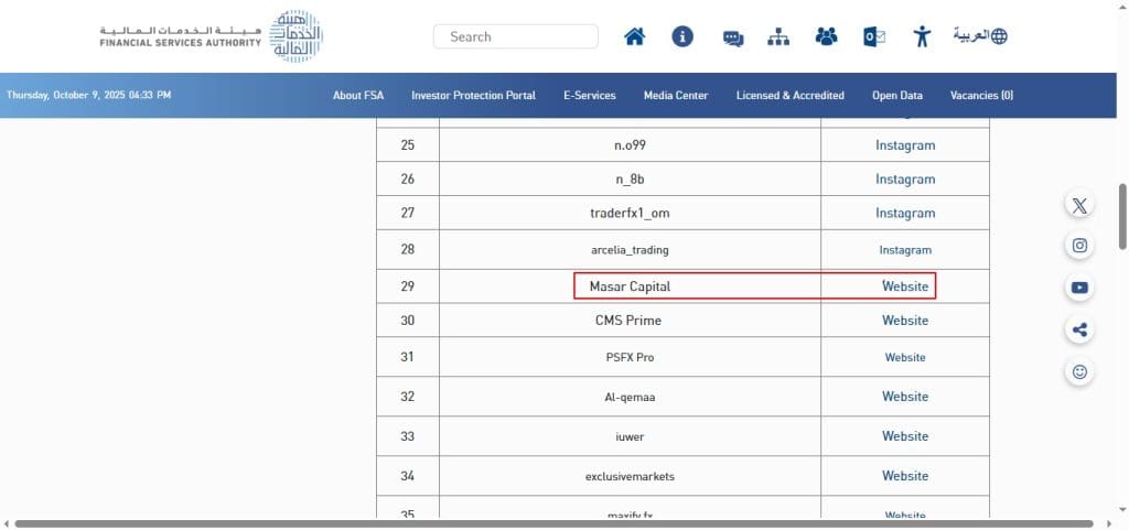 Before trading with any broker, it is essential to verify whether it is regulated by a reputable financial authority. In Masar Capital’s case: